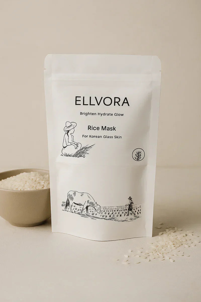 ✅ Discover the timeless beauty secret of rice with Ellvora’s Korean Rice Mask — a luxurious blend of tradition and science.